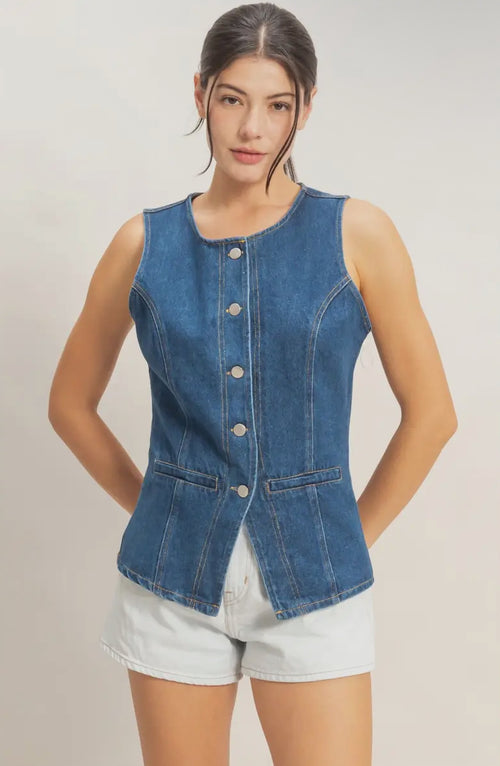 Button-Front Sleeveless Denim Vest